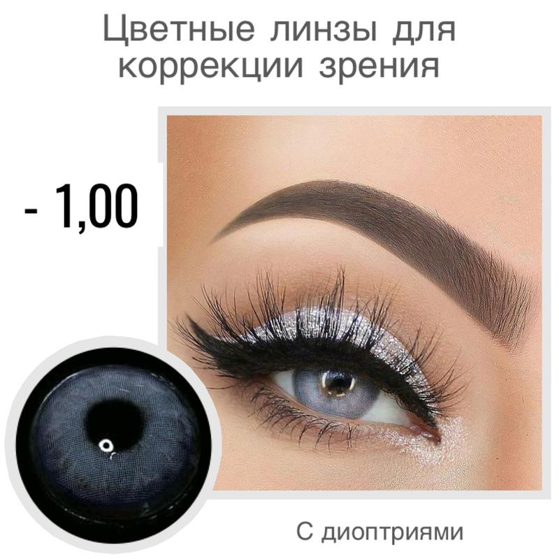 Линзы цветные серые для коррекции зрения с диоптриями ice grey. минус 1. перекрывают карие...