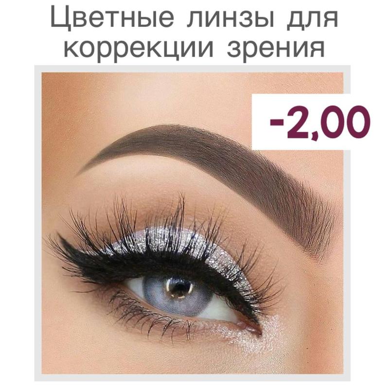 Линзы цветные серые для коррекции зрения с диоптриями ice grey. оптическая сила - 2. перек...