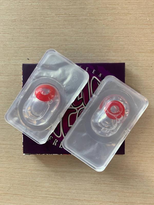 Красные цветные контактные линзы для глаз, отличное перекрытие своего цвета + контейнер дл...