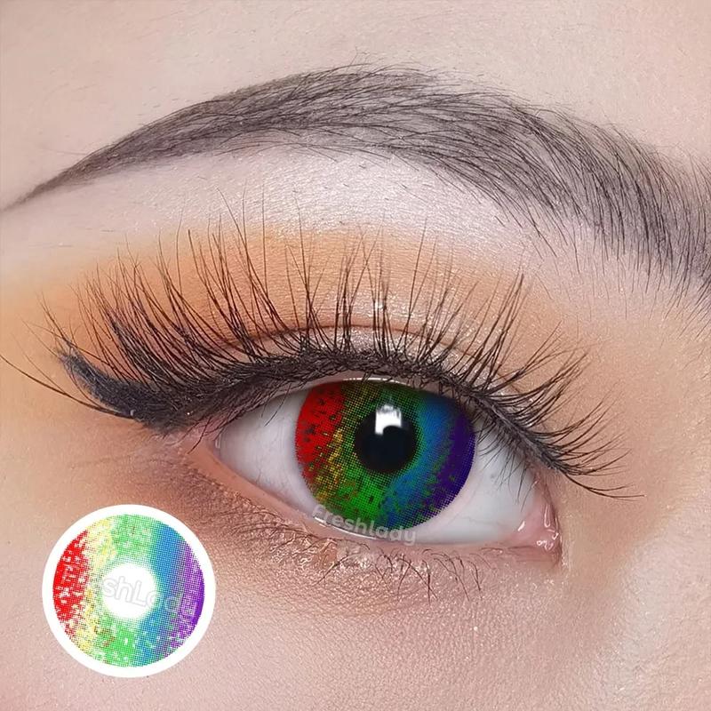 Радужные цветные контактные линзы для глаз, отличное перекрытие своего цвета + контейнер д...