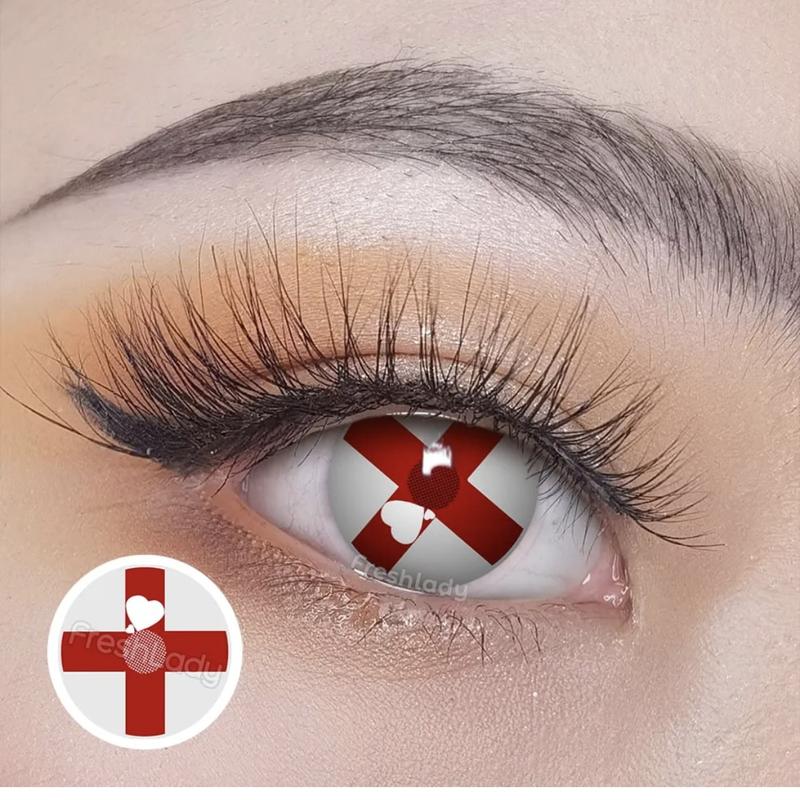 Цветные линзы белые с красным крестом и сердечком red cross / линзы для глаз на хеллоуин