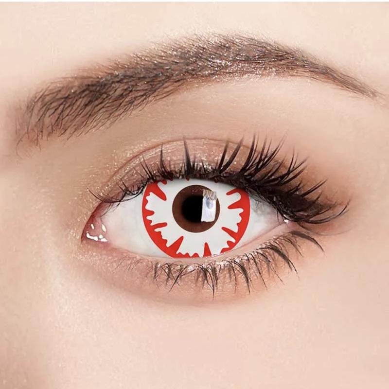 Цветные линзы белого цвета с красным неровным ободком trauma white / линзы на хеллоуин