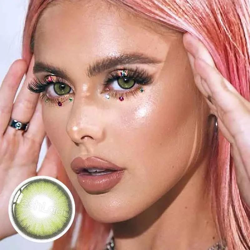Зеленые цветные контактные линзы для глаз, отличное перекрытие своего цвета + контейнер дл...