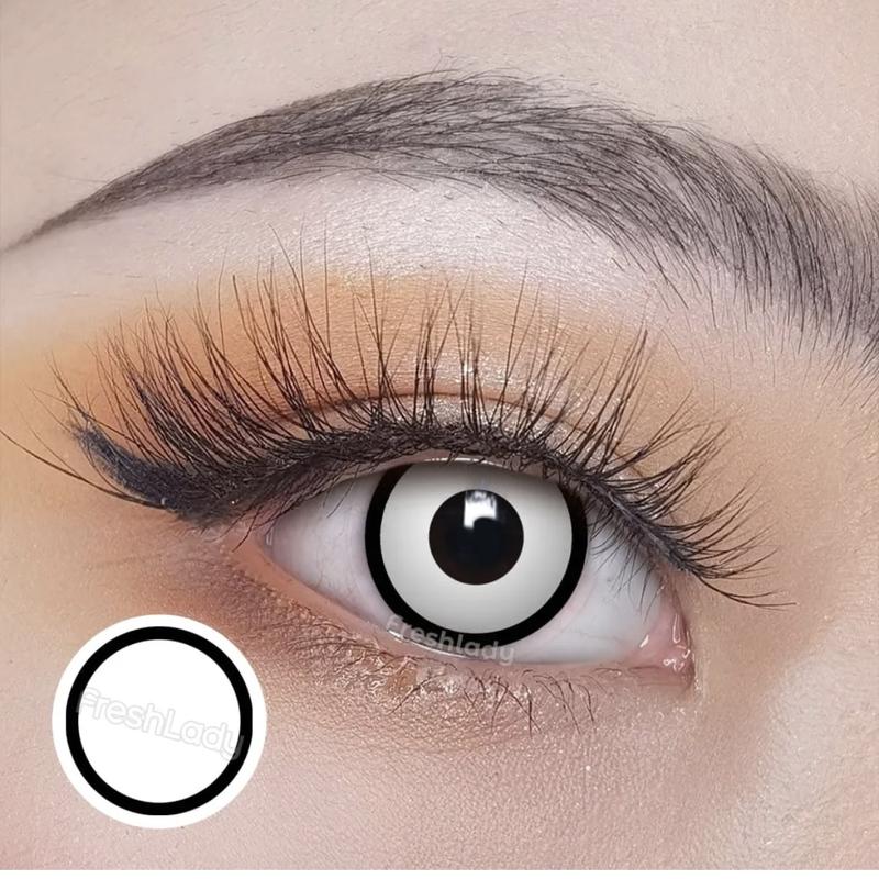 Цветные линзы белого цвета с черным ободком white manson / хеллоуин линзы белые с черным о...