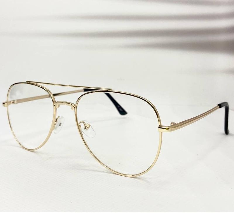 Очки компьютерные унисекс авиаторы в металлической черной оправе с тоненькими дужками золо...