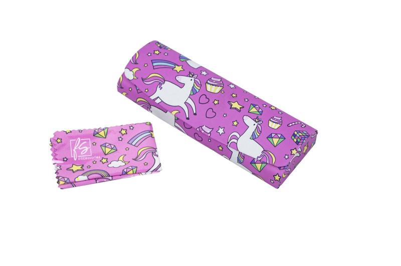 Детский футляр для очков Fashion Style F031. В комплекте салфетка из микрофибры торговой марки Fashion Style. Наружные размеры, мм.: салфетка - 150*130, футляр - 145*53*28