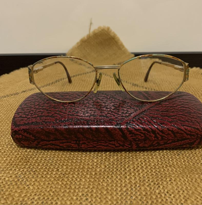 Неймовірна оправа для зору дорого бренду в майже ідеальному стані. Мені здається вантажна, дизайнерська, дуже красиве оздоблення, на флексах, в металевій золотій оправі. Дуже красиво і стильно виглядає на обличчі. Посередині є розмір, на дужці- А5, модель виробу. На одній дужці на внутрішній стороні є маленька потертість, на носіння не впливає. Питайте….