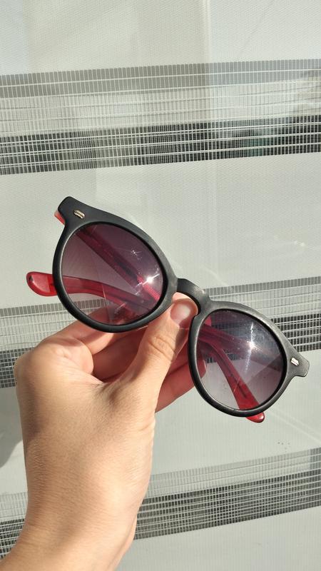 сонцезахисні окуляри Marion Ramm лінзи з червоним відтінком стан хороший одна дужка має царапину і типу викривлення. хоча на зєднані слідів викривлення немає