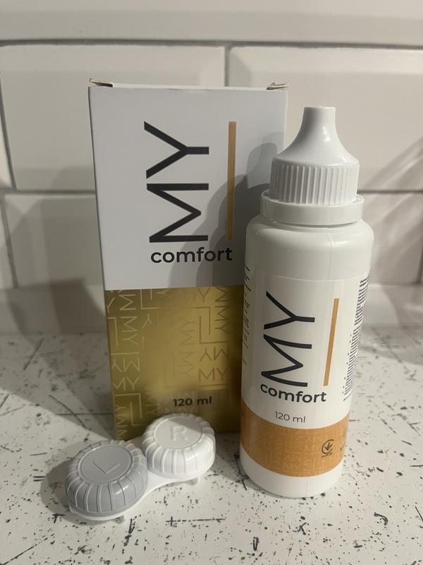 Розчин для лінз MY I comfort -призначений для дезінфекції, очищення, промивання, зволоження та зберігання контактних лінз. Об'єм: 120 мл. Особливості: Ефективно видаляє з поверхні лінз протеїни та ліпіди. Виробник: Іспанія Строк придатності: 04/2028