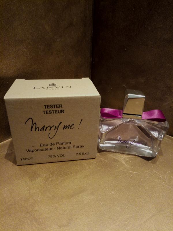 Тестер 75мл,парфюмированный. Оригинальный. Lanvin Marry Me трогательная Романтичная история знакомства и зарождение настоящей любви воплощена в парфюме Lanvin Marry Me. Он наполнен переживаниями и неподдельными эмоциями, испытуемыми влюбленными. Цветочные ноты напомнят о минутах страстных объятий и вселят веру в то, что любые страстные желания могут осуществиться, если они очищены самой любовью. Цветочно-фруктовая композиция составлена нотками горького апельсина, фрезии, персика, жасмина, розы, магнолии, кедра и мускуса. Есть миниатюра,30мл и 50мл.