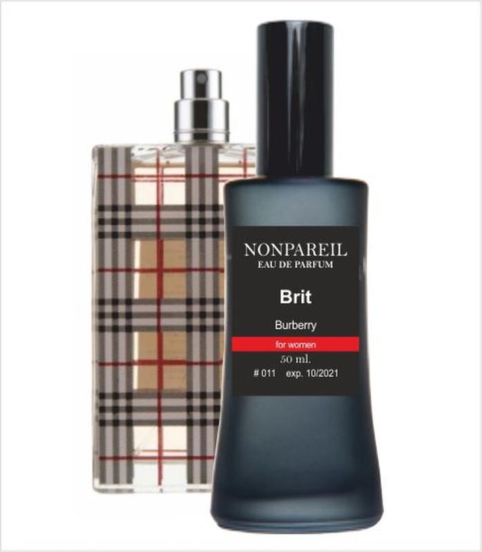 Nonpareil Burberry Brit - парфуми виготовлені з французьких компонентів і містять до 33% масляного аромо концентрату та на 99% відповідають аромату. Парфуми колекції Nonpareil тримаються на шкірі до 24-х годин і більше 72-х годин на одязі. Ви отримаєте свій улюблений аромат в елегантному, чорному флаконі 50 ml. з розпилювачем. Оригінальні назви використано виключно для ознайомлення з напрямками ароматів і не є назвами парфумерії колекції Nonpareil Parfum. При замовлення від 499 грн. - безкоштовна доставка Новою Поштою, або Міст Експрес (в замовленні можуть бути різні парфуми, зараз в колекції Nonpareil більш як 175 шт. ароматів) Опис аромату Burberry Brit Це неординарний аромат, що проповідує сучасний англійський стиль. Він не може похвалитися тією манірністю і пихатістю, яка притаманна традиційній Англії, проте характеризується внутрішнім благородством і стриманістю Туманного Альбіону.</p><p>Парфуми орієнтовані на жінок, абсолютно впевнених у собі, світлих, чарівних і закоханих у життя, ніжних і сексуальних, веселих і сонячних, але з дещо суперечливою, бунтарською і зухвалою вдачею. Аромат проголошує новий британський стиль, в якому прямолінійність змінюється епатажем, педантичність - імпульсивністю, а манірність - сексуальністю.</p><p>Із цією парфумованою водою можна поводитися по-британськи, залишатися собою: бути непередбачуваною і сексуальною, зухвалою і чарівною. Словом, настав час Burberry Вrit!</p><p>Композицію починають верхні нотки, виткані хрустким, приємним і гірким ароматом зеленого мигдалю, вишуканим цитрусовим ароматом італійського лайма, а також медово-солодким, соковитим ароматом груші, який додає бадьорості й енергії.