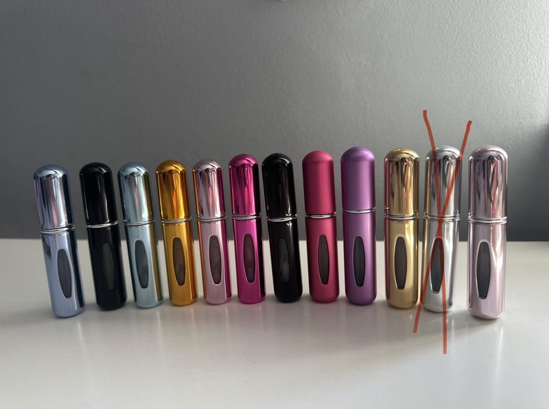 Атомайзеры для духов — стильное и удобное решение, чтобы брать любимый аромат с собой куда угодно! • Компактный размер — легко помещается в сумочку или карман • Легко наполняется за пару секунд без воронки • Герметично закрывается, не протекает • ✈️ Идеальны для путешествий, работы, свиданий и сумочки на каждый день Объём: 5 мл Многоразовое использование ♻️ 💨 Ваш любимый парфюм всегда под рукой!