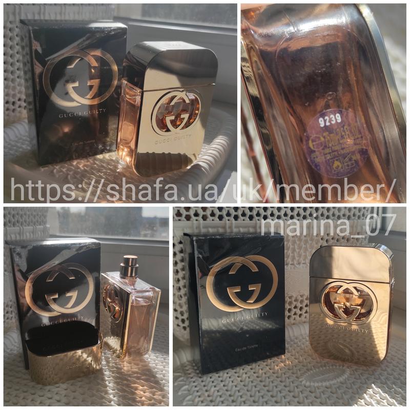 Туалетна вода Gucci Guilty 75ml 💛✨ Gucci Guilty от Gucci - это парфюм для женщин, принадлежит к группе ароматов Восточные Цветочные: 🔸Верхние ноты: Розовый Перец, Мандарин и Бергамот; 🔸Ноты сердца: сирень, Персик, Герань, Жасмин и Черная Смородина; 🔸Ноты базы: Пачули, Амбра, Белый Мускус и Ваниль. Чрезвычайно соблазнительный обольстительный аромат ✨ Парфюм в идеальном состоянии ✨Оригинальный, с коробкой (без нескольких использований ≈ 68-70мл еще есть с 75) 🖤 По дополнительной информации воспользуйтесь приватом 📝