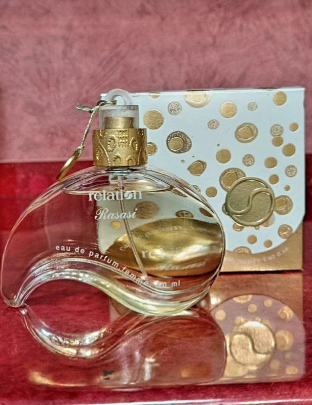 Rasasi Relation 2014 редкий аромат, снятый с производства - жеенская парфюмерная вода от арабского бренда Rasasi, выпущенная в 2014 год. Этот аромат принадлежит к цветочному семейству и сочетает в себе фруктовые и цветочные ноты, создавая элегантный и утончённый образ. Парфюмерная пирамида Rasasi Relation: Верхние ноты: персик, зелёный чай. Ноты сердца: роза, сирень, жасмин. Базовые ноты: мускус, ваниль.