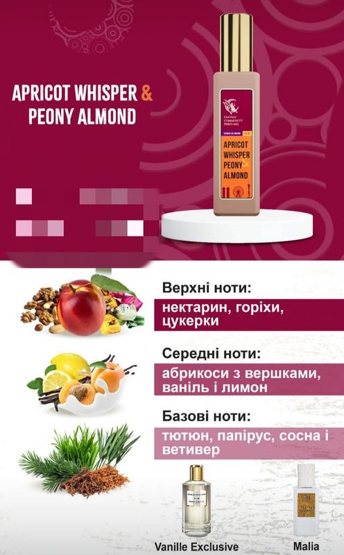 Пробник парфумів APRICOT WHISPER PEONY & ALMOND BY FANTASY COMMUNITY PERFUMES. Верхні ноти: Нектарин, Цукерки Середні ноти: Абрикоси з вершками, Ваніль, Лимон Базові ноти: Тютюн, Папірус, Сосни та Ветивер Сімейство ароматів: Фруктово-гурманське Кількість в упаковці - 1 шт. Рік прем'єри парфуму - 2024 Країна виробник - США Країна реєстрації бренду - США Об'єм - 2 мл тестер. Чи доводилося вам відчувати аромат, що передає суть теплого, сонячного дня, викликаючи спогади про затишок, відпочинок та солодке задоволення? Fantasy Community Perfumes майстерно створила такий аромат з Apricot Whisper Peony & Almond, який випромінює ніжність та тепло з кожною краплею. Ця чарівна парфумерна вода зустрічає вас грайливим відкриттям соковитого нектарина та солодких цукерок, миттєво занурюючи в фруктово-гурманське серце. У міру того, як аромат розкривається, кремові абрикоси, насичена ваніль і легкий натяк лимону створюють розкішне, оксамитове відчуття, що одночасно дарує комфорт та зачаровує. Базові ноти тютюну, папірусу, сосни та ветиверу надають аромату унікальної глибини, додаючи елегантності та легкого димного шлейфу, що залишається на шкірі, надаючи аромату нотки таємничості. З Apricot Whisper Peony & Almond від Fantasy Community Perfumes ви отримаєте незабутній аромат, що зачаровує та залишає тривалий слід. Категорія: Для жінок, Для чоловіків Формат - Тестер Клас парфуму - Нішеві Тип -Extrait de Perfume