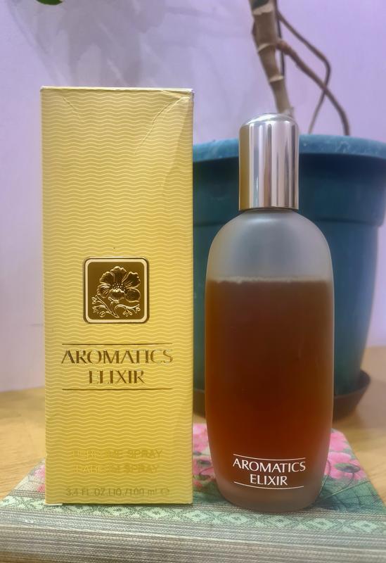 Классический шипровый парфюм от бренда Clinique. Созданный в 1971 году, бестселлер бренда. Его название- "ароматный эликсир"- раскрывает сущность самого аромата. Парфюм сочетает в себе симфонию из ароматных звуков - цветов, зелени, фруктов, древесины, специц, благоухания, и альдегиды. Очень устойчивые и шлейфовые, заполняют собой пространство. С 100 мл во флане отсутствуют не более 20 мл.