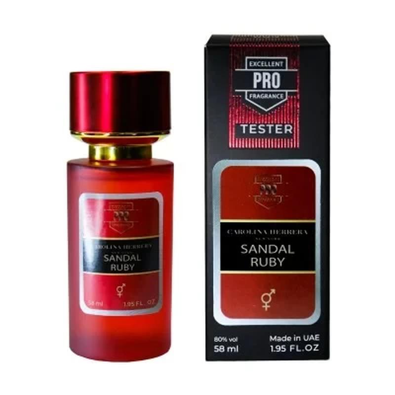 Carolina Herrera Sandal Ruby ТЕСТЕР PRO унисекс 58 мл 🔥 Carolina Herrera Sandal Ruby — это аромат-феерия, созданная для времени, когда хочется быть магнетическим и незабываемым. Он сочетает пряность, цветы и деревья в виде сложного, многогранного букета, захватывающего с первого вдоха. 🌶 В верхних нотах — корица и черный перец: жарко, ярко, с характером. 🌼 У серці — тубероза й герань, которые придают аромату чувственности и цветочного изящества. 🌲 В базе — сандал, атмосферский кедр и пачули: теплый древесный след, который закрепляет всю композицию и оставляет после себя впечатление глубины и роскоши. ✨ Sandal Ruby — это унисекс аромат для тех, кто любит контрасты: прянота + нежность, сила + женственность, современность + классика. 👉 Выбери Sandal Ruby — и пусть твой аромат станет твоим талисманом в мире стиля и воздействия 💎