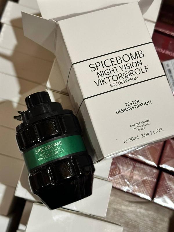 Viktor & Rolf Spicebomb Night Vision EDP — це вибухово-спокусливий чоловічий аромат, створений для тих, хто хоче вирізнятися. Тестер 90 мл з оригінальним наповненням. З перших секунд відчувається соковите зелене яблуко з гострим чорним перцем та лимоном. Далі аромат переходить у темні, насичені ноти шавлії, розмарину та зеленої смоли, а в шлейфі залишає теплу деревність, ялицю та ладан. Стійкий, яскравий, ідеальний для вечора та холодної погоди. Це саме той аромат, що привертає погляди й тримається довго.