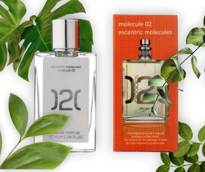 Формула Escentric 02 содержит амброксан - вещество, определяющее характерный аромат серой амбры. Обладает сладковатым сухим запахом, похожим на старую бумагу и картон, с выраженным солоноватым акватическим морским тоном, с оттенками древесины кедра, хвои, с мускусным нюансом, близким к амбретте. Некоторые люди в запахе амброксана отмечают аспекты зелени (чая), ладанника и даже орехов. В настоящее время в промышленных масштабах амброксан получают из склареола, вещества, содержащегося в эфирном масле мускатного шалфея. Стоит отметить, что большая часть шалфейного масла идёт именно на производство амброксана.