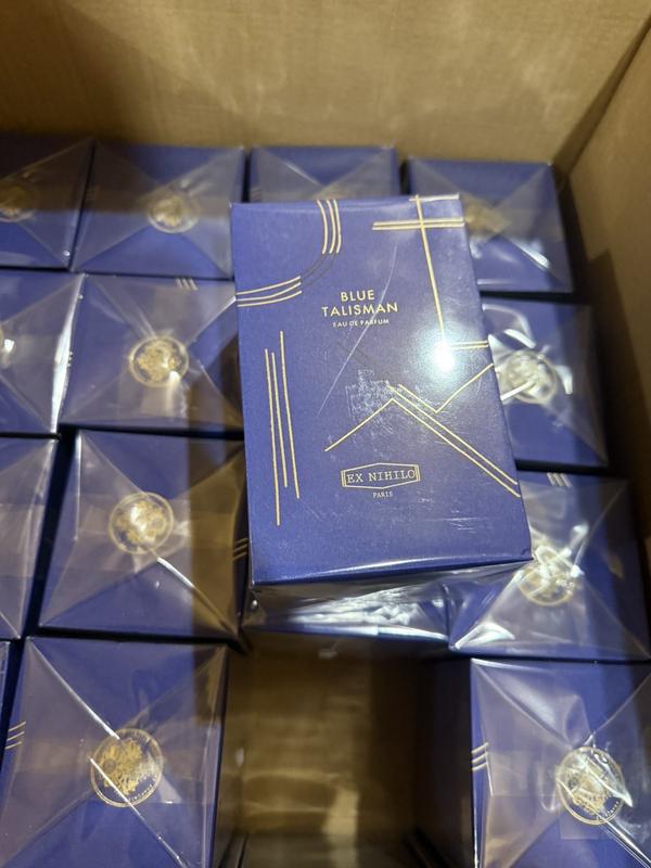 Ex Nihilo — Blue Talisman Особливості: • Eau de Parfum — ювілейне видання до 10-річчя парфумерного дому. • Флакон у глибокому синьому кольорі з геометричним золотим візерунком. • Об'єм: 100 мл. • Футуристичний та свіжий аромат із нотами груші, амбри та мускусу.