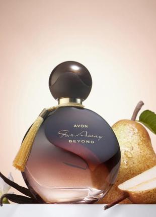 НОВИНКА!2021 г. far away beyond avon в концентрации ДУХИ. Восточный аромат с нотой гурме. груша, жасмин, мадагаскарская ваниль - в концентрации духи. 50мл. Очень стойкие, сладковатый...шлеф нежный.. перкрасный согревающий аромат с восточной ноткой ванили. Сделано Россия.
