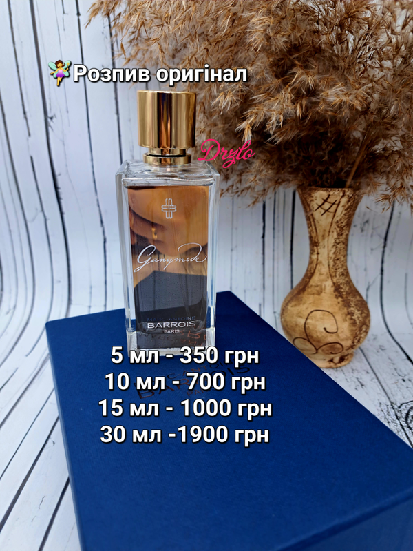 Дівчатка, ви просили і я вирішила відкрити розпив!!! Унісекс. Виразивий, гарний не банальний. Дуже розкішна ніша, яка б'є всі рекорди з продажу. Стійкість висока , шлейф - кілометровий. Будьте готові, що більшість людей спитає назву парфуму бо це просто № 1 . Підкорює з першого розпилення. ⚜️Атомайзер⚜️ скло з розпилювачем +15 грн. 5 мл -350 грн 10 мл -680 грн 15 мл - 1000 грн 20 мл 1300 грн Опис : Marc-Antoine Barrois Ganymede Перший аромат Marc-Antoine Barrois – B683, – випущений у 2016 році, викликав бурхливі емоції та приємні відгуки найвибагливіших парфумерних маніяків. З того часу бренд тримав паузу, розробляючи разом із парфумером Квентіном Бішем справді унікальну та неповторну композицію Ganymede. Вона відноситься до шкіряних видів ароматів, які однаково хороші і на жіночій, і на чоловічій шкірі. Прем'єра аромату: 2019 Країна ТМ: Франція Зроблено у: Франція Стать: унісекс Класифікація: нішева Тип аромату: Початкова нота: Мандарин Переклад: Османтус, Фіалка, Шафран Кінцева нота: Безсмертник
