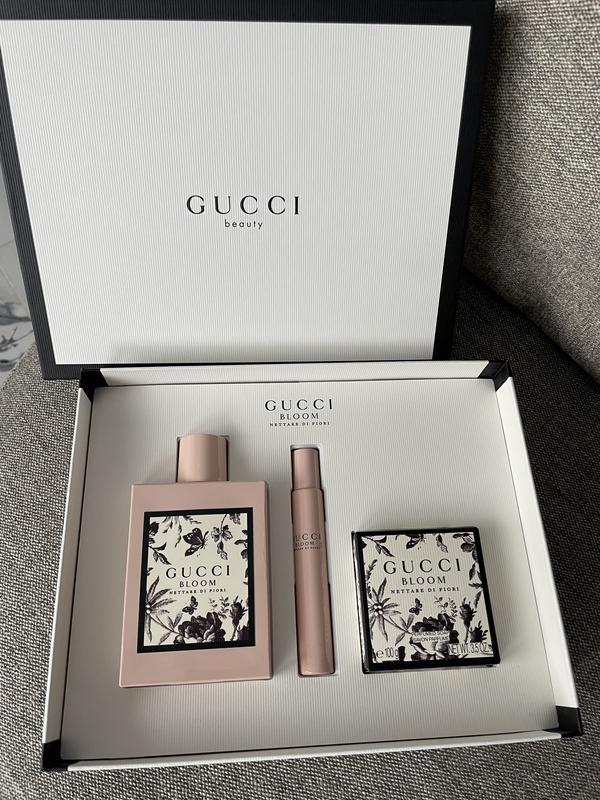 Продаю виключно оригінальні парфуми! Новий подарунковий набір. Трішки потерта верхня за захисна пластикова плівка - все як на фото. (Пошкодилася при транспортуванні). На якість самих продуктів в наборі це ніяк не впливає. Ціна 4850грн Шикарна пропозиція. В набір входить: парфумована вода 100 мл + парфумована вода 7,4 мл + парфумоване мило Gucci Bloom Nettare Di Fiori 100 гр. Набір дуже крутий! Відкриваючи коробку набору ви вже відчуєте цей красивий парфум - аромат мила розлітається по всьому набору. Аромат дуже красивий, відкриваючи коробку - вже відчувається неймовірний аромат (пахне мило). Знятий з виробництва. Рідкість! Запакований в красиву коробку Gucci - потім можна використовувати як шкатулку для косметики, або будь-яких дрібниць. Така парфумована вода приваблива і жіночна, нескінченно елегантна. Вона додасть вашому образу витонченості, підкреслить природну чарівність і гарний смак, перетворивши на найяскравішу зірку будь-якого заходу.