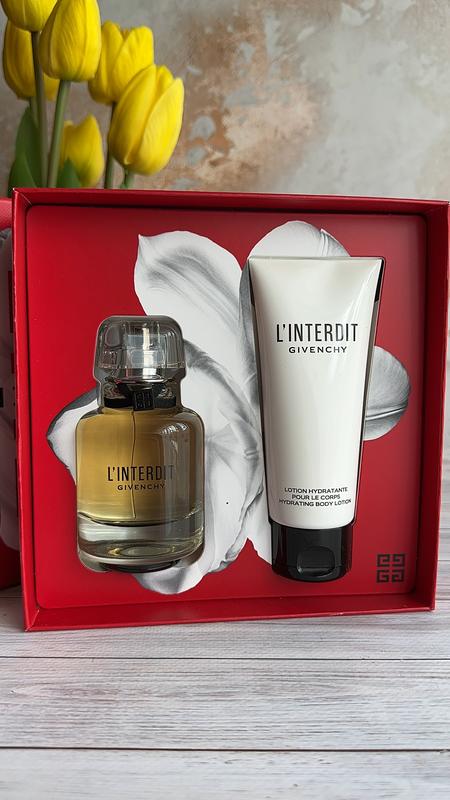 Набор Givenchy L'interdit Eau de Parfum Set Объем: 50 мл +75 мл Страна: Франция Подарочный набор содержит флакон культового женского аромата L'Interdit и парфюмированную вуаль для тела, которая смягчает кожу и делает ее гладкой.