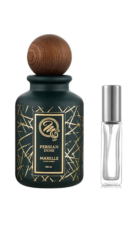 Початкова нота: Бергамот, Кокос, Лайм, Лимон Нота серця: Іланг - іланг, Імбир, Гібіск, Жасмин, Мандарин Кінцева нота: Ваніль, Мускус, Ром Persian Dune Marelle Perfumes - це справжнє втілення літнього екзотичного відпочинку на березі тропічного острова. Цей аромат, схожий на Virgin Island Water від бренда Creed, відкривається яскравими нотами лайму, лимона, бергамоту та кокосу, що створює відчуття свіжості та енергії.