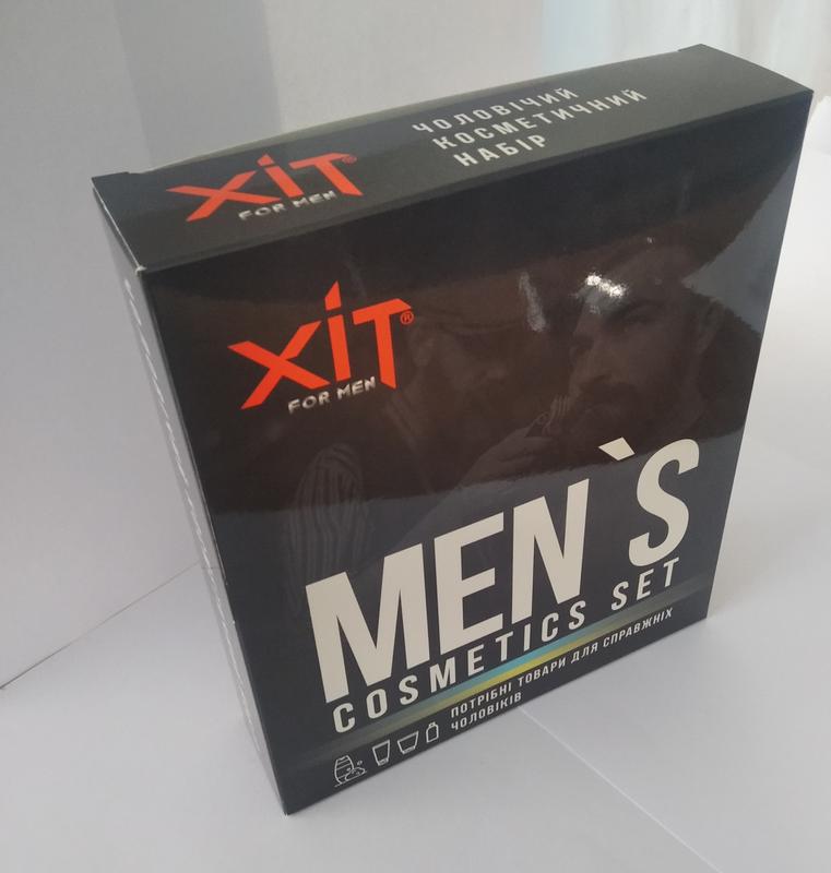 Набір косметичний для чоловіків " ХІТ classic №3: 1. Гель для душу"ХІТ" "Енергетичний заряд" 250 мл - 1шт. 2. Крем для гоління "ХІТ" з олією чайного дерева , 70г - 1шт. 3. Лосьйон після гоління з олією чайного дерева "ХІТ" 100 мл - 1шт. 4. Мочалка 1шт