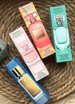 ▫️Bombshell Sundrenched Victoria's Secret женский Пион, Цветок гуавы,Песок ▫️Marc-Antoine Barrois Gynamede унисекс Кожаные ноты, фиалка, бессмертник ▫️Tiffany & Co intense женский Спелый мандарин, зеленый бергамот, пудровые ноты ириса, спелого персика и ароматной розы, пачули и мускус ▫️Narciso Rodriguez Cristal женский Фрезия, цветок апельсина, бергамот,белые цветы, роза, жасмин,мускус, кашмеран, кедр, смолистые сладковато-пряниe нотами бензоина и горячей амбры.