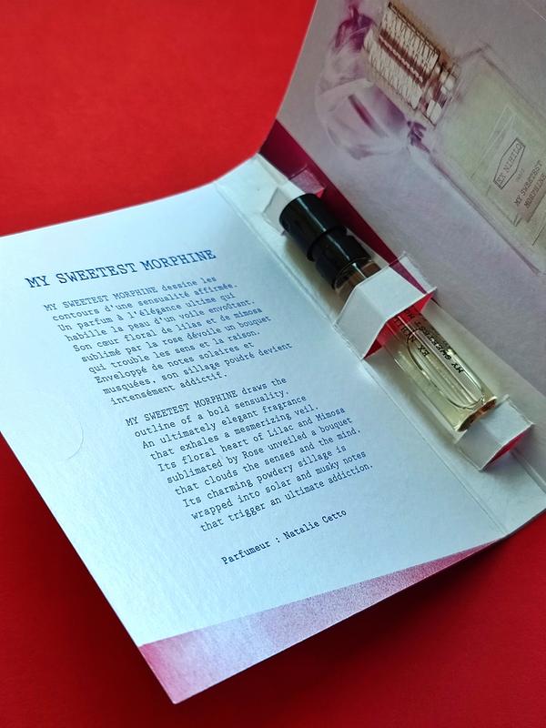 В наличии оригинальная миниатюра-пробник Ex NIHILO My Sweetest Morphine 2 ml Пирамида композиции Верхние ноты сирени, озона, бергамота окружают воздушно-цветочной аурой. В сердце таится нежность мимозы и роз, согревающие теплые солнечные ноты. Базовые аккорды мускуса, ветивера и пачули придают легкую сладковато-смолистую терпкость. Обмену и возвратам нет