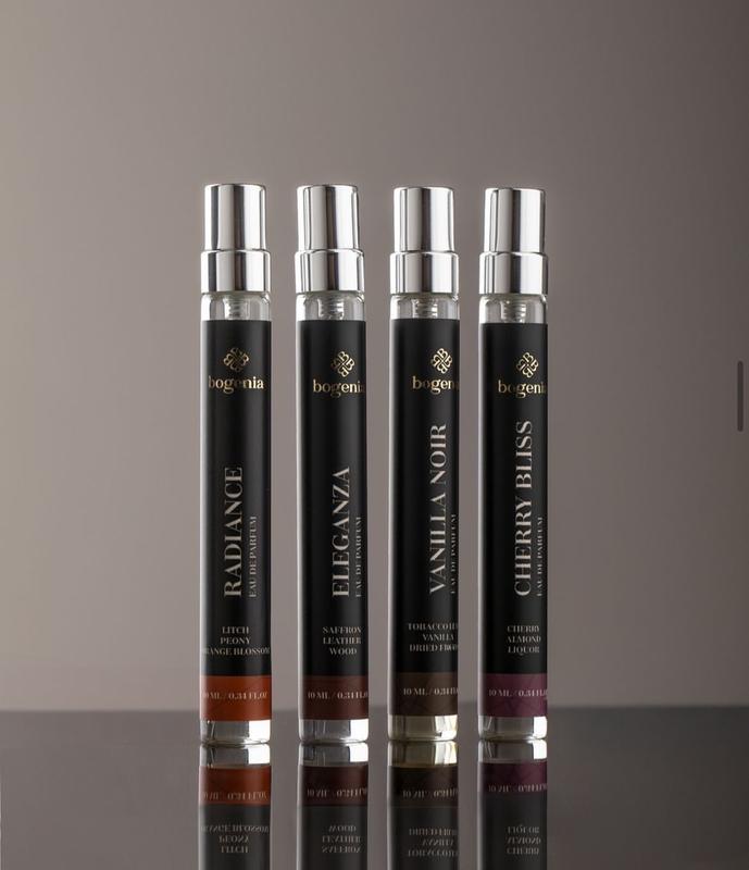 ПАРФУМОВАНА ВОДА «RADIANCE» Ноты: • Липа • Пион • Цветок апельсина ПАВФУМОВАННАЯ ВОДА «ELEGANCE» Ноты: • Чай • Журавлина • Лимон Амальфи ПАРФУМОВАНА ВОДА «VANILLA NO!» Ноты: • Табачный лист • Ваниль • Сухофрукты ПАРФУМОВАНА ВОДА «CHERRY BLISS» Ноты: • Вишня • Мигдаль • Ликер .