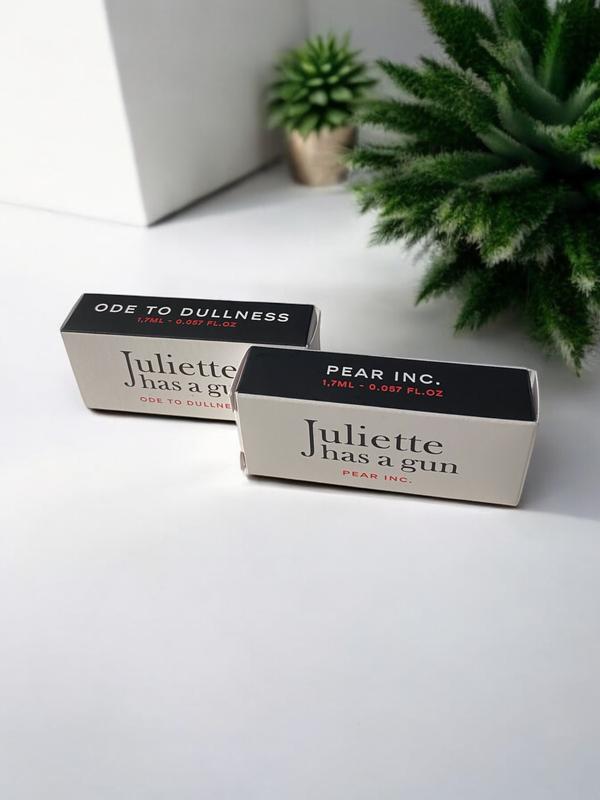 В наборе два пробника Цена указана за один Juliette Has a Gun Pear Inc. Полунисекс Аромат, семейство, группа-фужерный; фруктовый Страна производства Италия - Italy Pear Inc. - это аромат, созданный на основе зеленой груши, молочного мускуса и нотки амброксана, подчеркивающие его современность. Небесный аромат, который пробуждает счастье, солнечные дни и позитив! Год анонса: 2021 Верхняя нота: Груша; средняя нота: Ambroxan; Основные ноты: Мускус и Ambrettolide. Juliette Has A Gun Ode To Dullness Полунисекс Аромат, семейство, группадеревное; пудровый Страна производства Франция - France "Я представлял себе этот новый аромат как дань мягкости. Цветочный мускус с минимальной кремовой композицией, словно передышка в суете быстро меняющегося мира. Этот бесспорно успокаивающий аромат окутывает чувства пеленой мягкости и приглашает к самоанализу. «Ode To Dullness » воспевает кажущуюся банальность повседневной жизни и поэзию мелочей, простоту в искусстве и обыденность в возвышенном. Бархатистые ноты звездчатого аниса, кашмерана, сандалового дерева и бобов тонка дополняют друг друга и образуют успокаивающий шлейф." Год анонса: 2023 Верхние ноты: звездчатый анис, фрезия; Средние ноты: мускус, кашмеран; Базовые ноты: сандаловое дерево, бобы тонка.