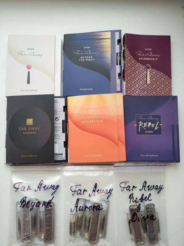 Цена обычного пробника 30 грн, с открыткой - 40 гр. В наличии пробники 9 ароматов из линейки far away: far away far away beyond the moon far away splendoria far away glamour far away endless sun far away rebel far away beyond far away aurora far away rebel and diva