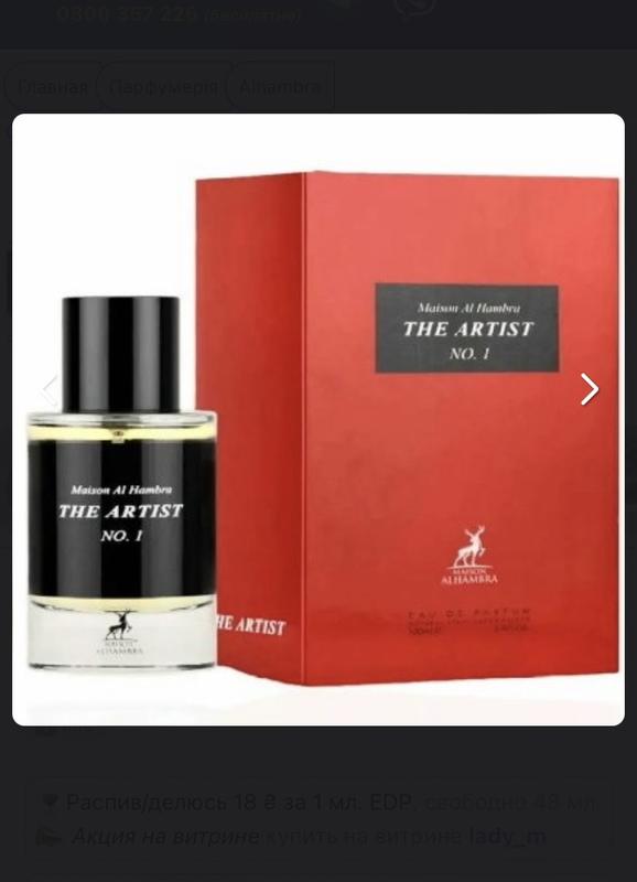Alhambra the artist #1. edp Отливант 3 мл, был один затем. Аромат напоминает Frederic Malle Portrait Of A Lady