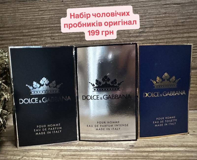 ✨ Набор мужских пробников✨ 💥 Оригинальный! 3️⃣Dolce & Gabbana K By Dolce & Gabbana edp. В каждом современном мужчине скрывается королевский дух, а парфюмированная вода Dolce & Gabbana K by Dolce & Gabbana является ключом к его сердцу. Этот магнетически притягательный аромат отлично подчеркивает уверенный характер владельца и олицетворяет мужчину, который самостоятельно выбирает собственные жизненные пути. Более интенсивная версия аромата K by Dolce & Gabbana Начальные ноты аромата завораживают пикантным сочетанием цитрусовых аккордов, легко подчеркнутым пряным кардамоном и можжевельником. Со временем раскрывается свежая герань, успокаивающее шалфей и ароматная лаванда, смягченные кремовыми тонами инжирного молока. Чувственное сочетание кедрового дерева, дымчатого пачули и нагармоты будет сопровождать вас в течение длительного времени 2️⃣Dolce&Gabbana K by Dolce&Gabbana Intense. Сильный, харизматичный, соблазнительный. Dolce&Gabbana K by Dolce&Gabbana Intense Eau de Parfum - кожаный элегантный аромат с фруктовыми, анималистичными, пряными и дымными оттенками. Ориентальные древесно-сладкие оттенки шафрана раскрывают композицию, воплощающую силу духа. Сладкий мякоть сливочного инжира в сердце окружен горько-пряными глубокими акцентами кожи. 3️⃣Dolce & Gabbana K By Dolce & Gabbana edt. Изысканная композиция K By Dolce & Gabbana от профессионалов парфюмерного дома Dolce & Gabbana способна стать настоящим украшением истинного джентльмена. В туалетной воде удивительным образом переплелись благоухание самых дорогих древесных пород, которые подчеркивают хороший вкус своего владельца. Начальная нота раскрывается энергичным дуэтом красного апельсина и сицилийского лимона. Нота сердца - это «душа» аромата. Она состоит из чувственного сочетания мускатного шалфея, пряных герани и красного перца, а также дополнена хвойными нотками можжевелковых ягод. Конечная нота представлена глубоким и благородным трио дымно-кожаного ветивера, прохладных хвойных акцентов кедра и мускусно-древесных пачулей.