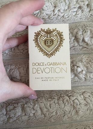 пробник парфумованої води Dolce&Gabbana Devotion Eau de Parfum Intense. Опис аромату: Східний ванільний аромат для жінок, створений Олів'є Креспом у 2024 році. Концепція: Аромат оспівує красу життя та її незмінні цінності – відданість і шляхетність. Композиція: Початкові ноти: лісовий горіх. Ноти серця: апельсиновий цвіт. Базові ноти: ваніль. Об'єм пробника: 1.5 мл.