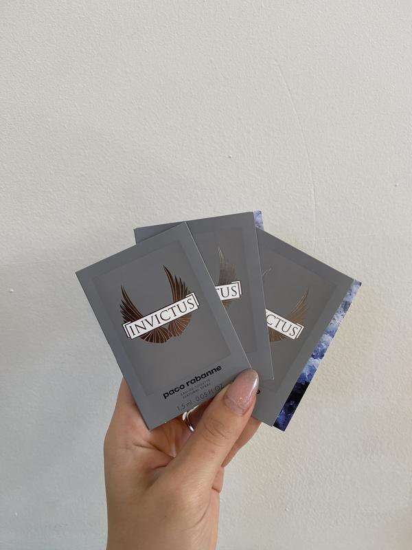 Набір 3 шт Paco Rabanne Invictus Туалетна вода пробник 1,5 мл Стати: для чоловіків Класифікація: елітна Тип аромату: водяні, деревинні Початкова нота: Грейпфрут, Мандарин, Морські ноти Нота серця: Жасмин, Лавр Кінцева нота: Дерево гуаяк, Дубовий мох, Пачулі, Сіра амбра Відправка Новою поштою, Укрпоштою