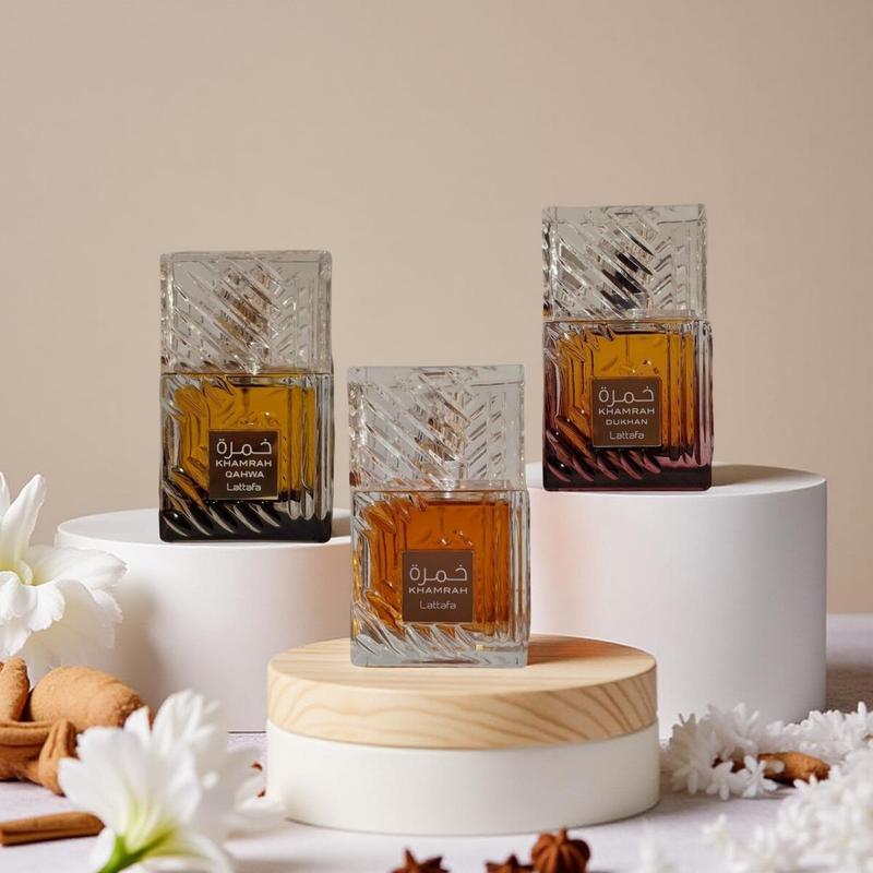 Сет парфюмов lattafa khamrah (3 парфюма: khamrah, qahwa, dukhan) - распив от 2 мл