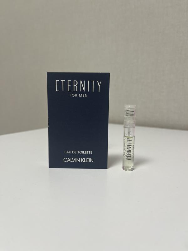 Оригінальний зразок аромату Calvin Klein Eternity for Men Туалетна вода Початкова нота: лаванда, мандарин, зелені ноти, лимон, бергамот Нота серця: базилік, жасмин, шавлія, герань, лілія, конвалія, шишкоягоди ялівця, цвіт апельсинового дерева, коріандр Кінцева нота: cандалове дерево, ветивер, бурштин, бразильське рожеве дерево, мускус Обʼєм: 1.2 мл.