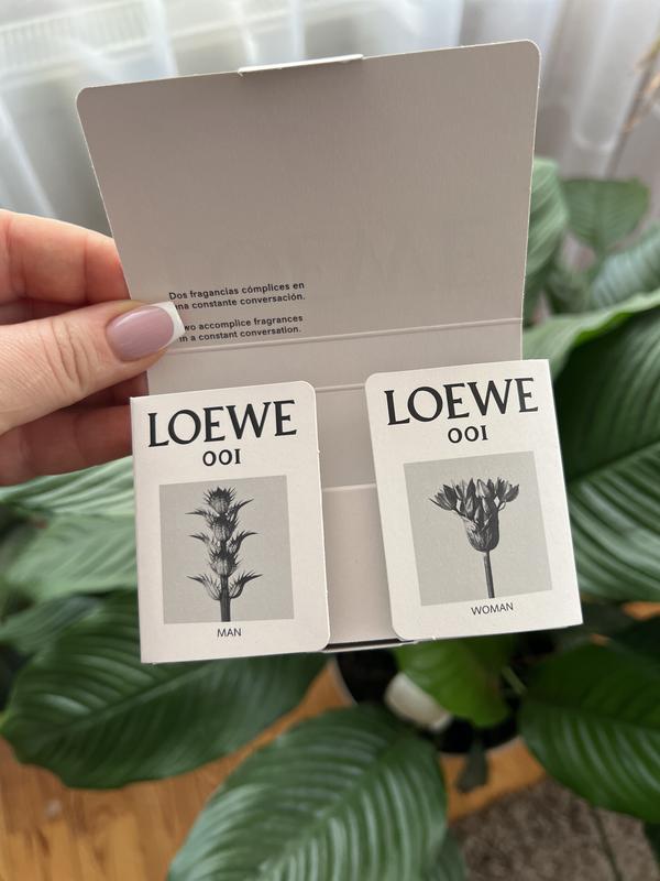 Набір пробничків Loewe 001 Man + Woman 2шт - жіночий та чоловічий по 2мл 1) Прем’єра аромату: 2016 Бренд: Loewe Серія: 001 Woman Група товару: Парфумована вода, Тестер Об'єм: 100ml Країна ТМ: Іспанія Зроблено в: Франція Стать: Для жінок Класифікація: Міддл Ап Тип аромату: Квіткові, Східні Початкова нота: Бергамот, Рожевий перець Нота серця: Єгипетський жасмин, Сандал Кінцева нота: Амбра, Ваніль 2) Прем’єра аромату: 2016 Бренд: Loewe Серія: 001 Man Група товару: Парфумована вода Об'єм: 100ml Країна ТМ: Іспанія Зроблено в: Франція Стать: Для чоловіків Класифікація: Міддл Ап Тип аромату: Деревинні, Східні Початкова нота: Бергамот, Кардамон, Мандарин Нота серця: Ветівер, Кедр, Кипарис, Насіння моркви, Сандал Кінцева нота: Білий мускус, Пачулі, Фіалка