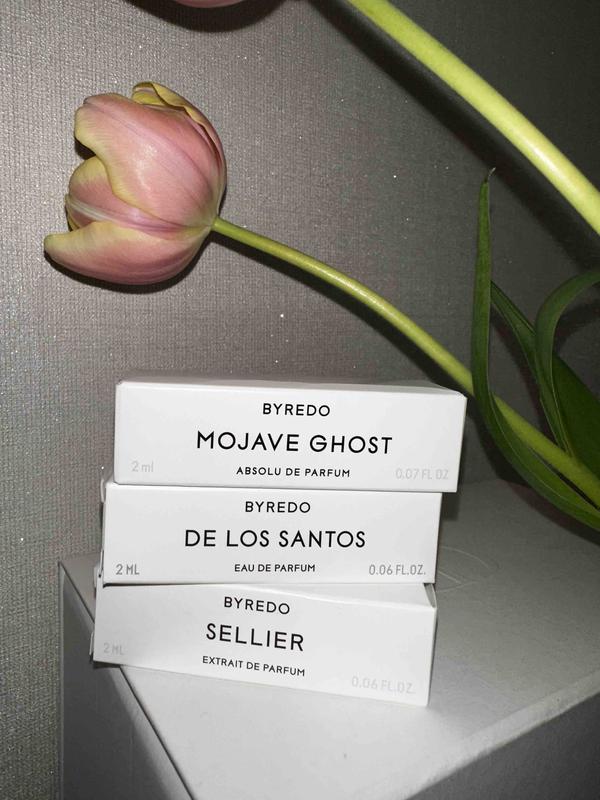 ✨ Byredo пробники ✨ 💥Оригинальный! ‼️по 220, а sellier 350 грн 🌸✨ Mojave Ghost 🌵🌸✨ Воздушный, цветочный с легкой сладостью - нежный, прозрачный и очень комплиментарный. Sellier 🐎🖤🪶 Кожа, табак и древесина - дорогой, теплый, с характером. De Los Santos 🌫️🪵🌿 Аромат дыма, шалфея и теплых деревьев - спокойный, духовный, немного мистический