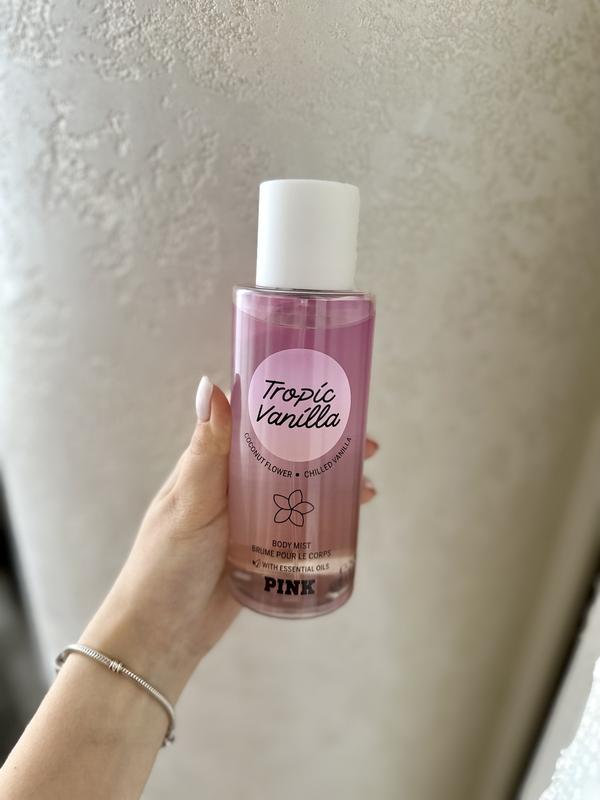 🤍Спрей Pink - TROPIC VANILLA ОРИГІНАЛ! В наличии🌸 ▪️Тип аромата: фруктово-цветочный ▪️Нотки аромата: кокос, лайм, цветок монои, ваниль ▪️Объем: 250 ml