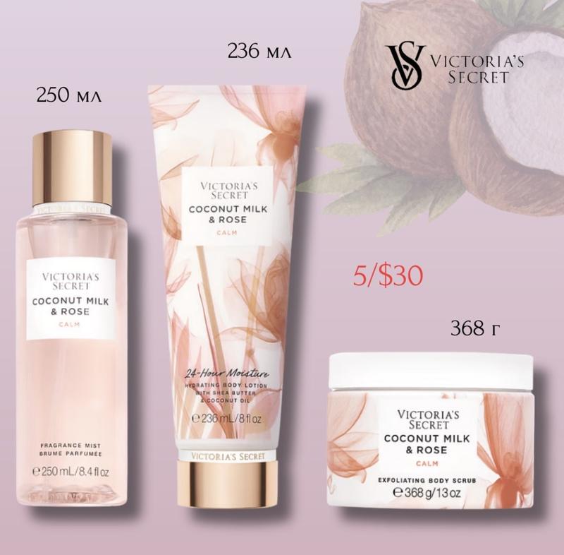 Victoria’s Secret оригинальная продукция с официального сайта. Можно приобрести отдельную каждую единицу 🎀 550 грн Мист Coconut Milk & Rose Ноты: кокосовое молоко и роза 550 грн Лосьон Coconut Milk & Rose Ноты: кокосовое молоко и роза 550 грн Скраб Coconut Milk & Rose Ноты: кокосовое молоко и роза