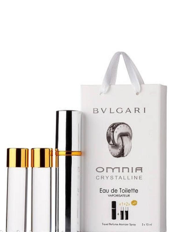 Духи в подарочной упаковке 3 шт по 15 мл Духи Bvlgari Omnia Cristaline - женский аромат, полный непреодолимого обольщения, необыкновенной нежности и воплощения настоящей женственности. Игривость этого сладковато-свежего аромата поражает своей прозрачностью. Флакон создан в виде переливающегося на свету кристалла, который идеально подчеркивает характер и утонченность парфюма. Парфюмерная композиция открывается сладкой японской грушей и бамбуком. Главными ароматами "сердца" являются лотос, черная смородина и зеленый чай. Вкладывают нотками выступает дубовый мох, мускус и дерево гуаяк. Мини парфюм 45 мл упакованы в подарочную коробку в виде пакета с ручками, их качественного плотного картона, на котором написано бренд любимого аромата. Прекрасный подарок по любому поводу. Внутри три флакона аромата, один в дорогом железном чехле который съемный и две запаски. Как первый закончился, Вам просто нужно снять железный чехол и поменять флакончик парфюма. Каждый флакон по 15 мл Очень удобно брать в борбу, карман, дорожную косметичку Большой выборпрактируй Amouage Honour for Woman Angel Schlesser Essential Angel Schlesser Femme Antonio Banderas Blue Seduction Armand Basi In Red Attar Collection Hayati Azzaro Mademoiselle Burberry Weekend Woman Bvlgari Omnia Crystalline White Cacharel Amor Amor Woman Calvin Clein Euphoria Blossom Carolina Herrera 212 Vip Carolina Herrera Good Girl new york Carolina Herrera Good Girl Velvet Fatale Chanel Chance Eeau fraiche Chanel Chance Tendre Chanel Coco Mademoiselle Chanel №5 Woman Chloe Woman Dior Addict 2 Dior J'adore Woman DKNY Be Delicious DKNY Be Delicious Fraiche Blossom Dolce & Gabbana 3 L ' imperatrice Dolce & Gabbana Light blue Elizabeth Arden green tea Escada Island Kiss Escada Rockin Rio Escada Sorbetto Rosso Escentric Molecules Molecule 01 унисекс Escentric Molecules Molecule 02 унисекс Ex Nihilo Fleur Narcotique Fendi Life Essence Gian Marco Venturi Woman Giorgio Armani Acqua Di Gioia Giorgio Armani Code Giorgio Armani Si Givanchy Ange ou Demon Le Secret Givenchy l'interdit Gucci Flora Gucci Guilty Perfume Gucci Parfume II Pink Gucci Rush 2 Hayati attar colection Jimmy Choo Blossom Jo Malone Lime Basil and Mandarin Katy Perry Meow Kenzo Leu Pear Kilian Good Girl Gone Bad Kilian I don't Need A Prince By My Side To Be A Princess Lacoste Eau De L. 12.12 Pour Elle Sparkling Lacoste Femme Woman Lalique l'amour Lancome Idole Lancome La Vie Est Belle Lanvin Eclat Lanvin Marry Me Lanvin Modern Princess M. K. F. Baccarat Rouge 540 унисекс Montale Intense Cafe Montale Roses Musk Moschino Funny Moschino Love Love Woman "Nina Ricci "" Red Apple " Nina Ricci Green Apple Nina Ricci Ricci Ricci Paco Rabanne Lady Million Paco Rabanne Olympea Penhaligon's Portraits Changing Constance Prada Candy Salvatore Ferragamo Incanto Charm Salvatore Ferragamo Incanto Shine Tiziana Унд Andromeda Tiziana Унд Cassiopea Tiziana Унд Kirke Tiziana Унд Orion Tom Ford Bitter Peach Tom Ford Lost Cherry Tom ford metalique Tom Ford Rose Prick унисекс Tom ford soleil blanc Tom Ford Tobacco Vanille Trussardi Donna Trussardi Valentino Rock'n Rose Couture Versace Bright Crystal Versace Crystal Noir Versace Versense Vertus Narcos'is Victoria's Secret Bombshell Victoria's Secret Crush Victoria's Secret Very Sexy Now Yves Saint Laurent Black Opium Yves Saint Laurent Mon Paris эскада фиеста армани май уей диор мис диор