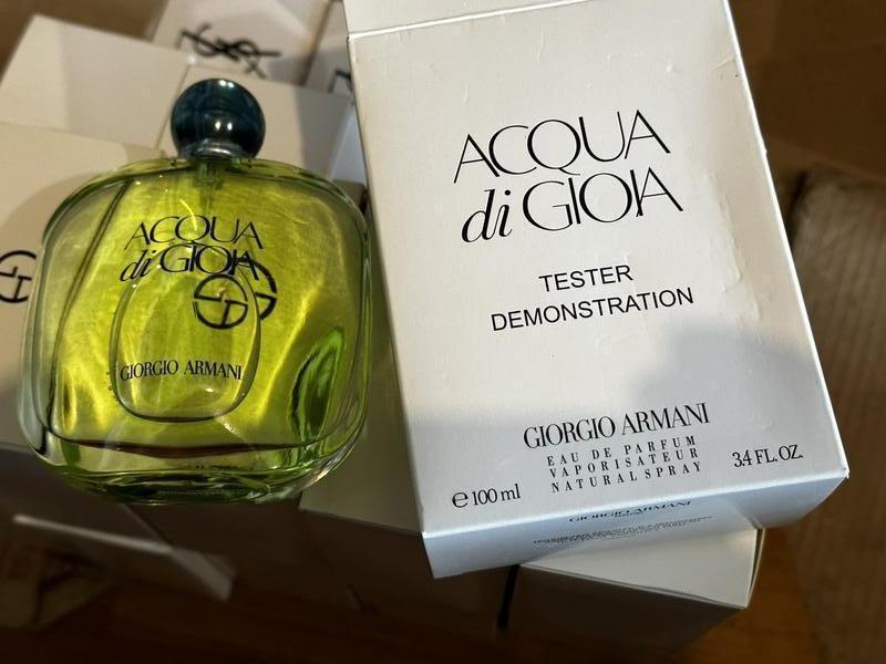 В наявноcті - Armani Acqua di Gioia 100 мл - тестер з кришкою. Прем’єра аромату: 2010 Країна ТМ: Італія Зроблено в: Франція Стать: для жінок Класифікація: елітна Тип аромату: квіткові Початкова нота: Лимон, М'ята Нота серця: Жасмин, Півонія, Рожевий перець Кінцева нота: Кедр, Лабданум, Цукор