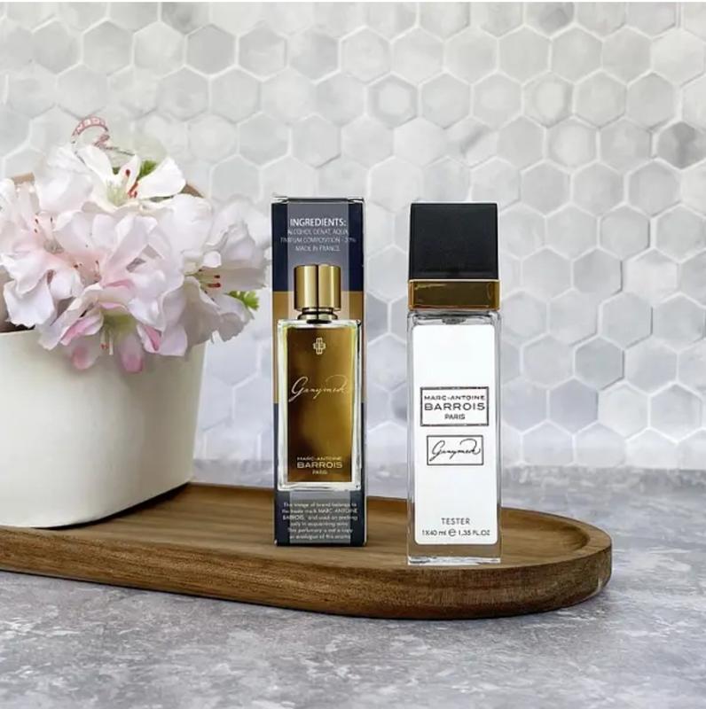 Створюючи елегантну нетривіальну гармонію навколо квартету мандарина, фіалки, безсмертника та замші, Марк-Антуан Барруа-кутюр'є та Квентін Біш – парфумер мріяли про планету Ганімед. Скелястий супутник Юпітера, відкритий у 1610 році Галілеєм, сяючий, покритий льодами та пустельми, він отримав свою назву від грецької міфології: молодий чоловік, Ганімед, був викрадений богами, які були настільки зачаровані його красою, що дарували йому безсмертя. Аромат парфуму Ганімед заснований на замшевих нотах, проте художники відійшли від традиційних структур, щоб перенести нас у світ нової елегантності-сяючою та струменевою. Шкіряні ноти стають м'якшими, набуваючи легкості та ніжності у поєднанні з ароматом фіалки. Запах мандарину несе бадьорість та кислинку. Він надає енергійності аромату з самого старту. Нота безсмертника звучить контрапунктом і підтримує ароматну гармонію своїм двоїстим звучанням-іноді мінеральним, іноді солоним. Вся композиція грає з контрастами та протилежностями.