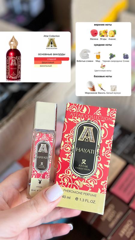 Аромат ванильного мороженого с ягодным сиропом заказывали? 😍Сладенькое с легкой кислинкой 😋 Тип аромата: фруктовые, гурманские Начальная нота: Ананас🍍Малина🍓, Ягоди🫐 Нота сердца: Мед 🍯 , Слива, Сливки, Цветочные ноты 🌸Черная смородина🫐 Конечная нота: Белый мускус, Ваниль🤤 Аромат Attar Collection Hayati (в переводе с арабской "Жизнь") очарует и погрузит вас в мир волшебной сказки! 🕌 Самый вкусный из всей коллекции атмосферов, этот игривый аромат понравится и ветренным кокеткам, и солидным леди, а мужчины вращаются за обладательницей столь изысканного десерта.❤️🔥 Сладкая женщина, любительница хорошей жизни в шлейфе Hayati затмит собой всех!🔥