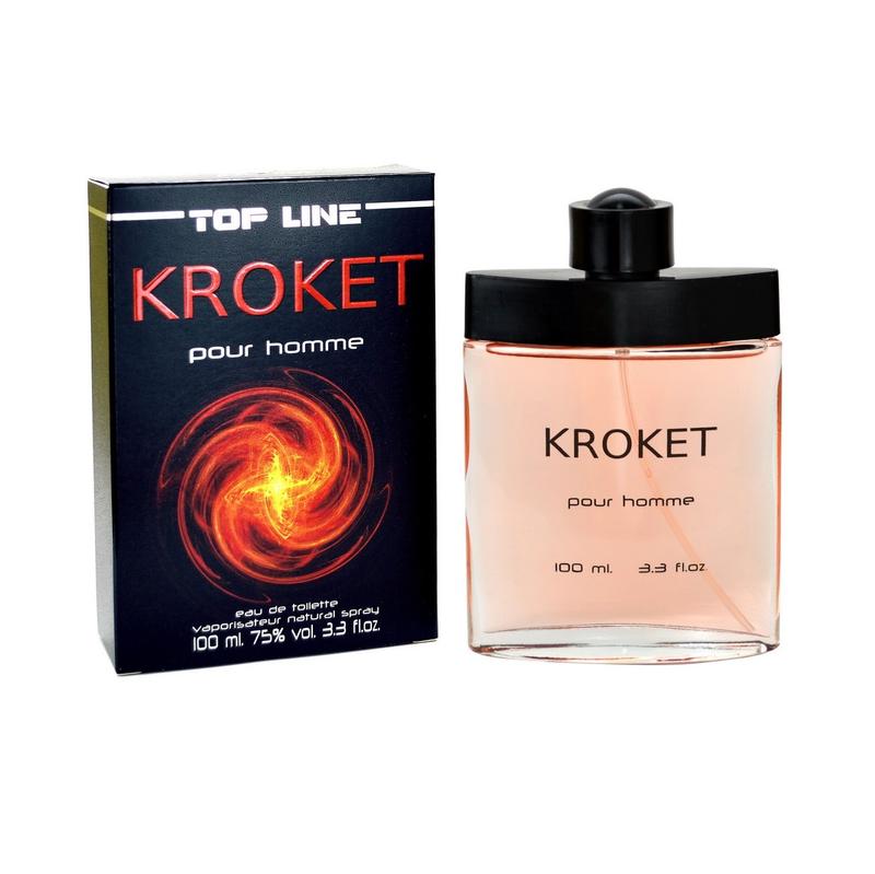 Гурманський коктейль запахів презентує Top Line Kroket для чоловіків. Верхні нотки аромату бурлять від поєднання пряного перцю і солодкого манго, яке трішки віддає хвойними відтінками. В ноті серця розкриваються мускатний горіх з солодким присмаком і аромат свіжообсмажених зерен кави. Шлейф парфумів утворюють деревні нотки, солодкі плоди ялівцю і камфорно-евкаліптовий кардамон.